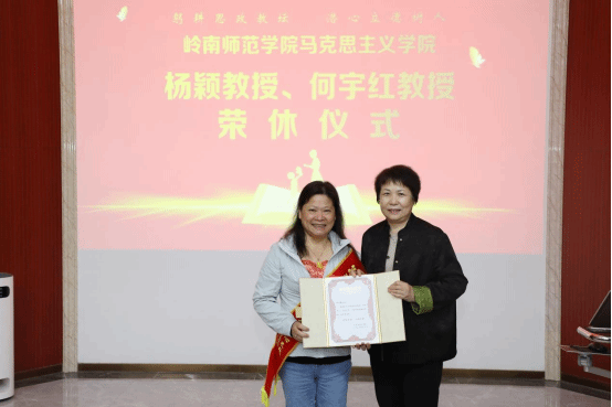 1月5日,马克思主义学院在岭南讲堂举办教师荣休仪式。学校党委书记兰艳泽出席仪式,为荣休的杨颖教授,何宇红教授颁发荣休证书、荣休纪念品和荣休礼物。马院全体教职工参加荣休仪式。