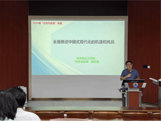 陈跃瀚和张艳伟两位老师分别以《全面推进中国式现代化的机遇和挑战》《当前我国国家安全形势与贯彻总体国家安全观》为题作辅导报告。陈跃瀚深入分析了当前国际形势下中国式现代化的机遇和挑战,提出了新形势下推进中国式现代化的基本路径。张艳伟从当前国家安全形势出发,深入阐述了总体国家安全观的内涵和实践要求。