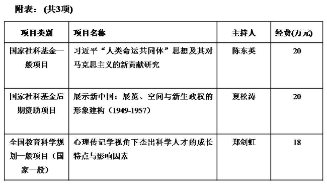 国家社科基金项目是我国人文社科领域的最高级别科研项目,包括国家社科基金一般项目、国家社科基金后期资助项目、全国教育科学规划项目等类别,是我国学科评估、大学评价的重要指标之一。由于国家社科基金项目大多采取限额申报,层层淘汰,为了遴选推荐出有竞争力的国家项目,黄崴副校长先后主持召开国家基金项目申报动员大会和经验交流会,并邀请校外国家社科基金项目评审专家参与我校的评审推荐工作。今年我校在这三大类项目中都获得立项,国家社科基金立项总数在全省同类院校中位居前列,展示我校的学术水平与发展潜力。