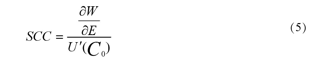 如果要通过个人选择来实现环境目标,那么私人和社会目标必须保持一致。在这个模型中,实现这一目标的关键是确定适当的碳价格。碳的边际社会成本(SCC)描述了人们今天愿意支付多少钱通过减少单位排放来改善环境。以当前的货币衡量的碳的社会成本(SCC)是: