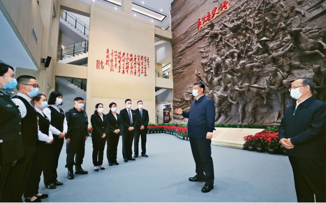 2020年10月19日,党和国家领导人习近平、李克强、栗战书、汪洋、王沪宁、赵乐际、韩正、王岐山等在中国人民革命军事博物馆参观“铭记伟大胜利 捍卫和平正义——纪念中国人民志愿军抗美援朝出国作战70周年主题展览”。新华社记者 鞠鹏/摄