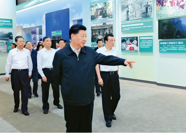 2019年9月23日,党和国家领导人习近平、李克强、汪洋、王沪宁、赵乐际、韩正、王岐山等在北京展览馆参观“伟大历程 辉煌成就——庆祝中华人民共和国成立70周年大型成就展”。新华社记者 鞠鹏/摄