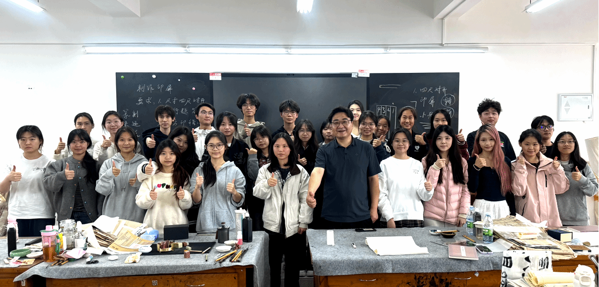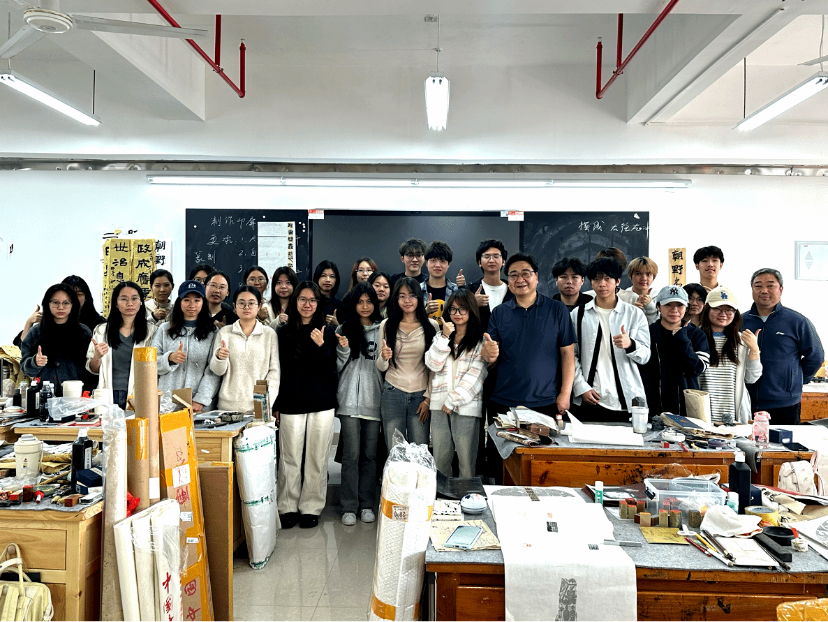 车帝麟与2024级书法1、2班学生的合影(车帝麟、美院书法系学子供图)
