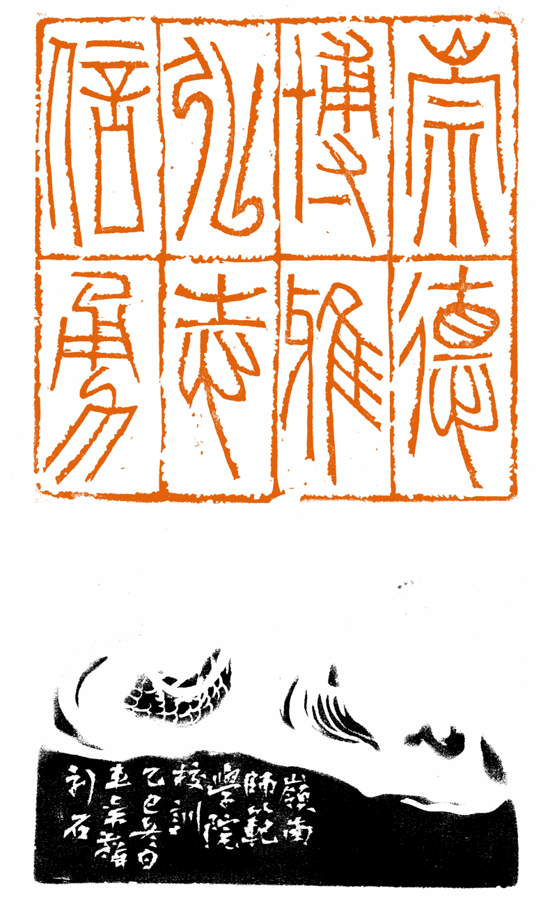车帝麟捐赠给学校的校训篆刻作品“崇德、博雅、弘志、信勇”(车帝麟、美院书法系学子供图)