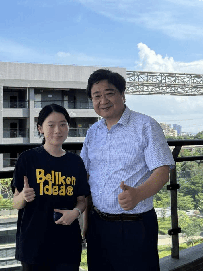 车帝麟与杨靖彤的合影(车帝麟、美院书法系学子供图)