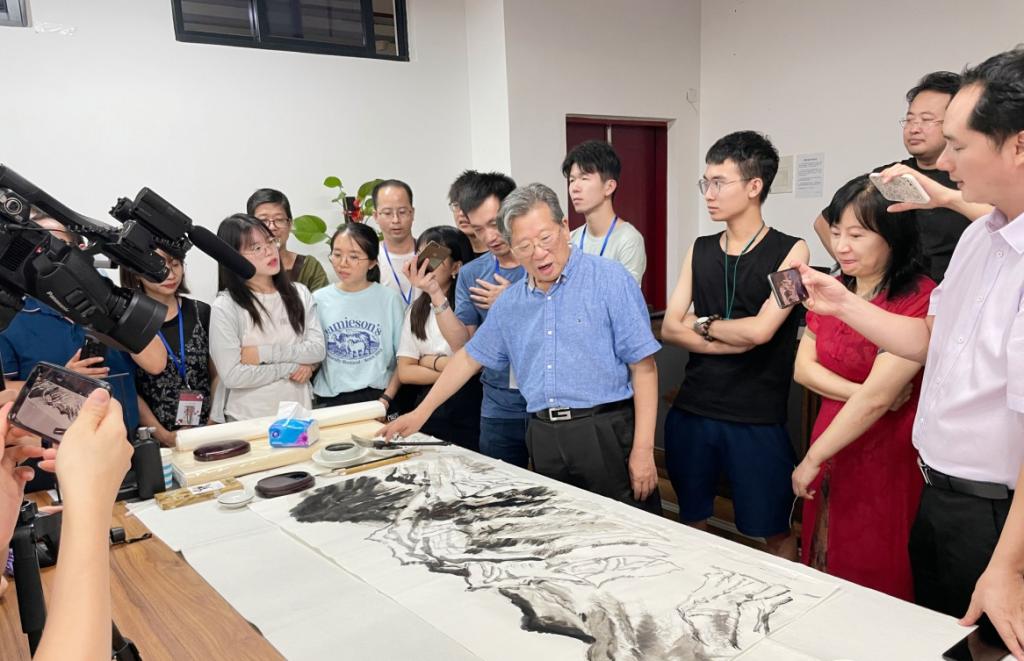 著名画家、中国美术家协会顾问、中国艺术研究院博士生导师、广东美术家协会名誉主席许钦松教授为学员开讲第一课,他从类、史、法、场等多方面图文并茂为大家解读了如何品读中国山水画,并现场挥毫泼墨示范岭南山水画的用笔、用墨技巧。许钦松认为,在国家大力推进美育教育的背景下,美术教育将会摆在更加突出的位置,中国人要懂得品读自己的山水画,让美育滋养生命的成长。