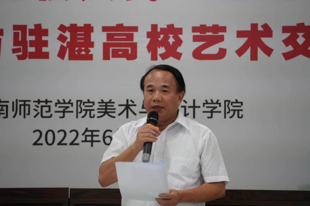 “这是美术专业办学史上的盛事,也是一次艺术交流的盛会。”受学校党委书记兰艳泽、校长阳爱民的委托,副校长苏古发在交流会上致辞。苏古发介绍了学校的基本情况,期待广东画院在学科专业建设、艺术创作、人才培养、平台打造等方面给予美术学院更多的专业指导和支持,也希望师生向各位艺术家虚心学习,坚守艺术深入基层,为人民创作、为时代放歌,推出更多有中国气派、广东特色、湛江风情的精品力作。
