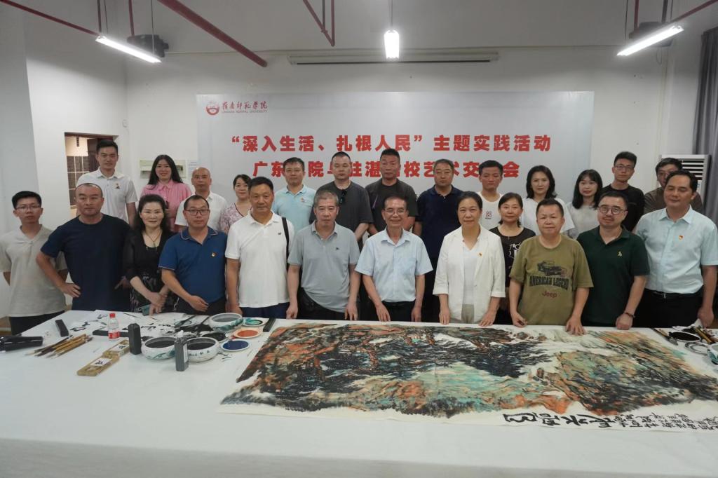 6月20日下午,新任广东省美术家协会主席、广东画院林蓝院长率郑阿湃副院长和黄国武、陈映欣、陈迹、杜宁、关坚等十多位画家莅临美术与设计学院交流指导,与驻湛高校美术院系代表、湛江美协代表交流探讨开展“深入生活,扎根人民”主题实践活动。