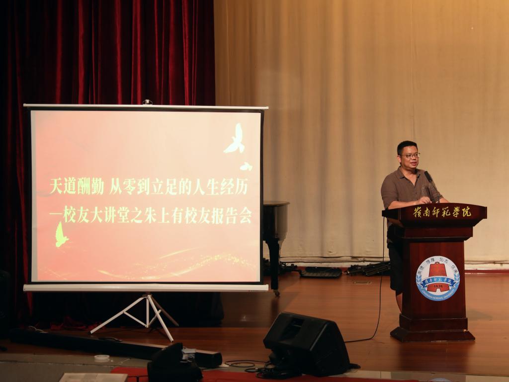 从零到立足的人生,朱上有实现了人生的逆袭。“他们谁都不会想到,当年那个在别人看来默默无闻的人,在大学发奋图强,站上了优秀校友讲座的主席台。”朱上有与师弟师妹们分享了求学之路,从大学校园到社会的点点滴滴在其回忆中犹如画面般一幕幕呈现。他告诉同学们,要抓住人生中的重要节点,勇于改变,与自己对弈。面对当代大学生沉迷网络文化“躺平”的现状,校友朱上有引导同学们从低俗的文化中抽离,要多从书本中汲取知识,拓宽自己的眼界。他强调,创业路上必须有扎实的文化基础,艺术与文化不可割裂,告诫同学们勤奋学习的过程是与自我的对弈,要在日复一日坚持不懈的努力中觅得真知,为将来走上社会做好准备。