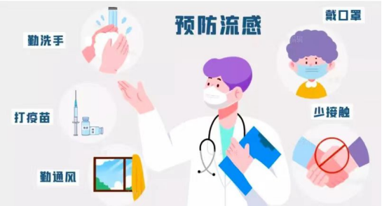 1.提前接种疫苗,科学佩戴口罩,勤洗手,注意咳嗽礼仪,少聚集。