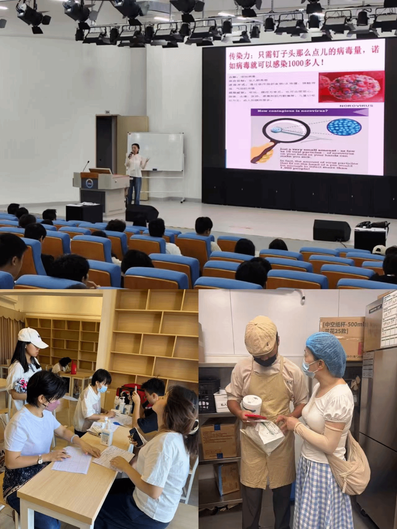 10月18日在梁成义主任指导下,由邓运勤副主任带队到湖光校区医疗点、宿舍区、饭堂等重点区域开展调研及指导秋季腹泻病防控工作,在医疗点调研时强调做好学生传染病监测预警,做到早发现、早报告、早处置,向患病学生做好宣教并发放宣传折页,提高学生防病意识;在宿舍区调研时指导物业定期做好环境消毒工作,建议物业保洁全员开展消毒技术培训;卫生防疫科谌捷科长同日对湖光校区食堂、超市进行督导检查,强调要把好食品卫生安全关,从业人员要加强健康监测,做到坚决不带病上岗;10月21日为进一步落实传染病防控督导检查的建议,由门诊部在集贤楼301 教室组织举办诺如病毒防控知识与消毒技能培训讲座,学生干部、辅导员、饮食及物业工作人员共158人参加,以“关键少数”带动全员防控,织密校园健康网。本次系列工作尚有刘娇叶副主任及陈新雨参加。