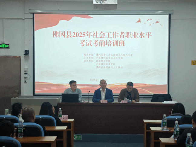 座谈结束后,谢正富和吴金凤老师为参加2025年社会工作职业水平考试的佛冈考生进行了为期1天的考前培训。