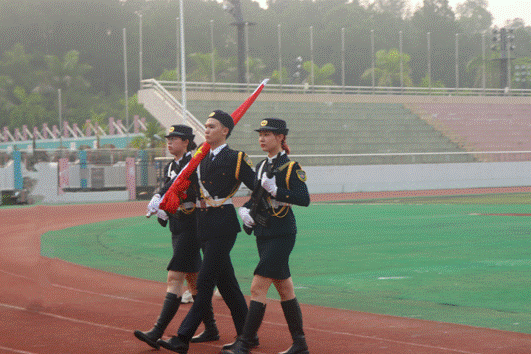 8月31日早晨,社管学院领导、教师与学生代表积极响应学校新学期升旗活动的号召,积极参与此次升旗仪式。七点升旗仪式准时开始,伴随着振奋人心的音乐,护旗手们迈着整齐的步子,手握鲜艳国旗在众多学子们的注视下进场。铿锵有力的步伐、挺拔的身姿与闪耀红旗交相辉映。肃穆庄严的国歌也回荡在莘莘学子的心间,激励着学子们以更加饱满的奋斗激情为理想挥洒汗水。