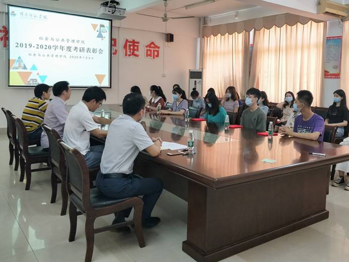 为夯实学院学风建设的基础,激励同学们立志成才,促进学院学风进一步优化,7月5日上午,社会与公共管理学院于弘雷楼大会议室召开了2020年考研表彰大会。社会与公共管理学院党委冯亮如书记,张勇副院长,黄剑博士,辅导员钟明杰、李从来老师以及18名顺利考上研究生的同学出席了本次会议。