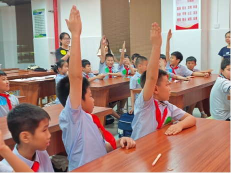 活动现场小学生积极举手回答问题