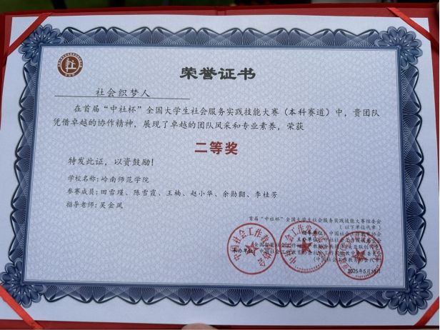 经过近一年的赛程角逐,我校社会与公共管理学院社会织梦队参赛团队凭借扎实的专业素养和出色的实践能力,最终脱颖而出,荣获全国二等奖佳绩,展现了我校社会工作专业学子的风采。