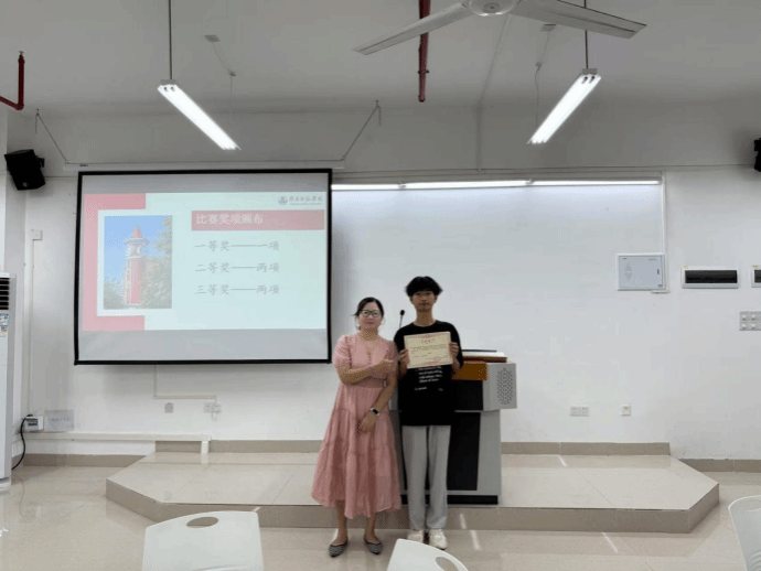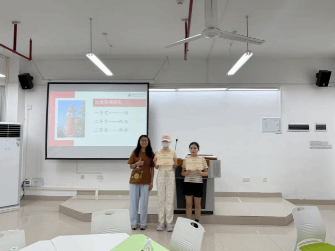 紧接着,进入到比赛颁奖环节。经过网络投票和五位评委的评分,最终评选出获奖作品。主持人在现场宣布获奖名单后,由评委胡志利老师、胡林琦老师和会长黄凯怡为获奖队伍颁发获奖证书与奖品。