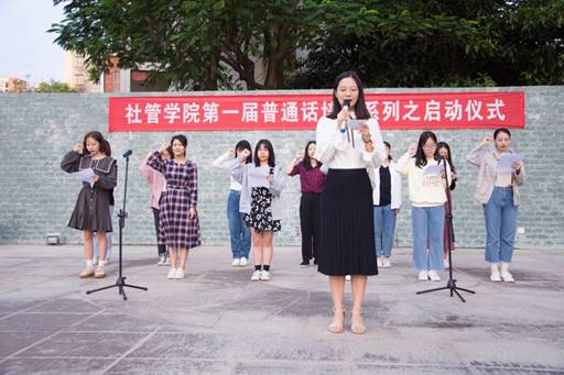 为提高20级新生的普通话水平,引导新生养成良好的读书习惯,营造热情、团结、优秀的学习氛围,10月19日早上,社管学院于师道园举行第一届普通话培训班启动仪式暨新生晨读活动。辅导员吴桂碧老师及全体普通话教员、20级新生出席了本次活动。