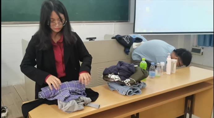 为了推进课堂教学方式创新,谢正富老师对社工2017级《社区纠纷调解》课开展体验式情景教学的探索尝试。自课程开展以来,17社工两班的各组成员都用心地为大家带来了精彩、惊艳的演绎,谢老师也曾表示,同学们的情景剧不论在社工专业元素的运用上还是在演员故事的演绎上都远超他的预想,感到非常的满意,且对接下来的小组表演寄予很高的期待。10月23日,本课程迎来了最后一个“表演日”,四组成员早在教三-108课室,为当日的演绎进行提前预演与准备。