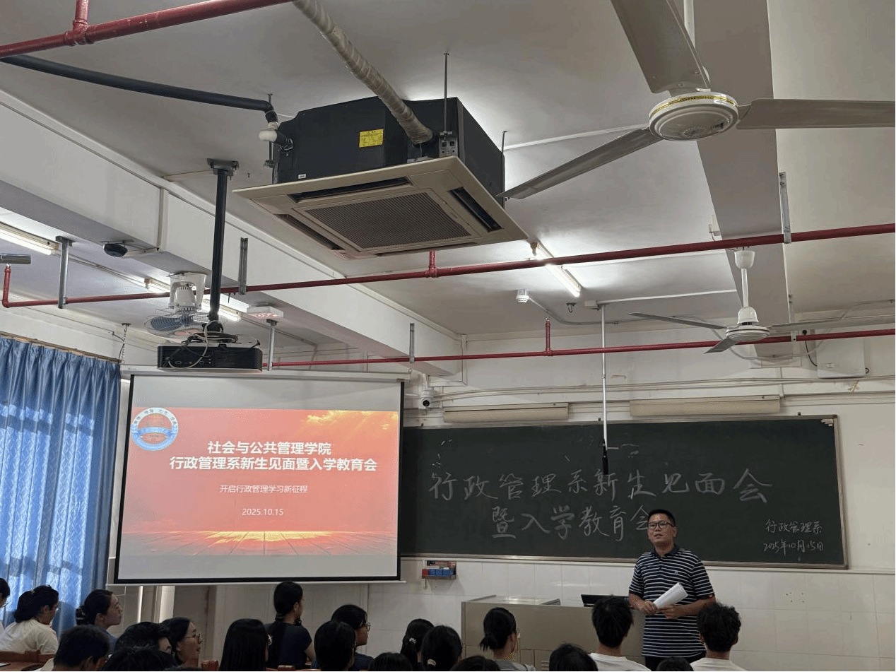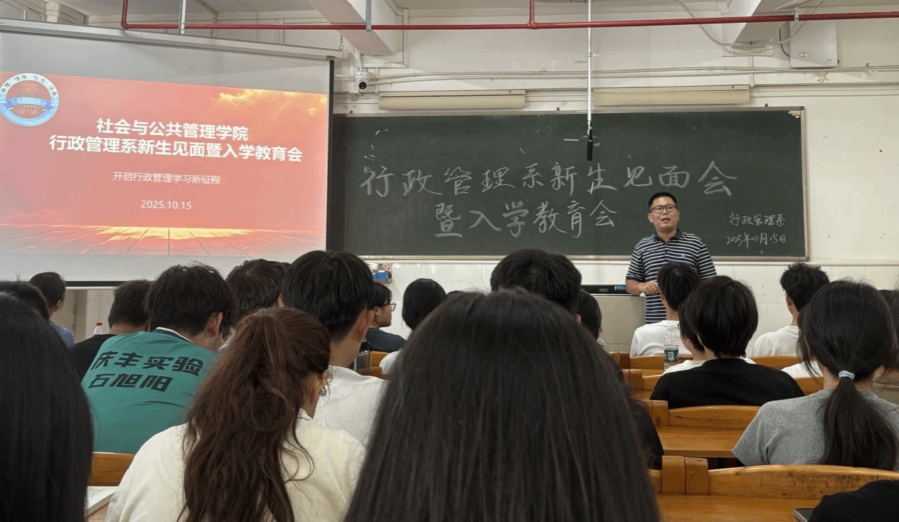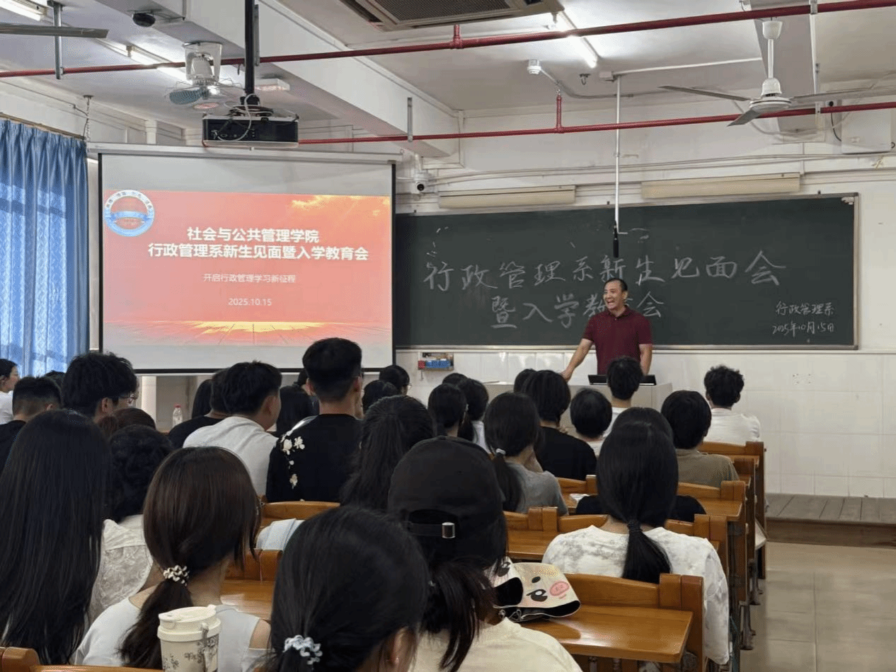 2025年10月15日,行政管理系为2023级专插本和2025级全体新生举行了一场隆重而温馨的师生见面暨专业介绍会。出席本次会议的领导和老师分别有行政管理系系主任沈洪涛、副主任庄飞能,行政管理系老师张苇锟、丁太平。本次会议旨在帮助新生及早了解专业、融入大学生活,为接下来的学习生涯奠定坚实的基础。