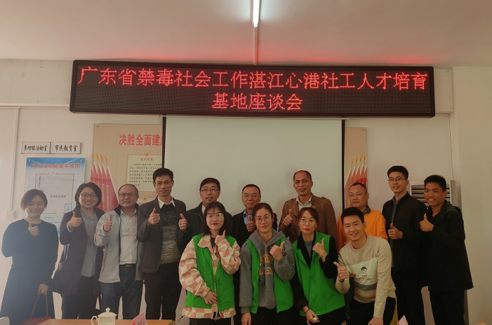 下午,培育基地负责人贺光耀陪同省禁毒局梁超圣一行前往岭师校外禁毒社工实习基地(心港社工),同实习单位负责人、禁毒实习生代表进行座谈,详细了解实习生在实习基地的工作情况,并进行了指导和反馈。市禁毒办陈志坚副主任、赤坎区禁毒办窦明毅副主任、中华街道党工委书记袁文韬、心港社工理事长苏德剑及秘书长陈斯等领导出席了座谈会。