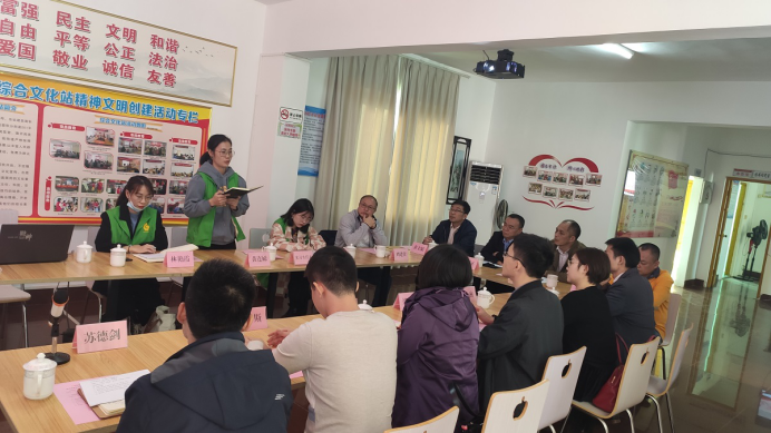 省禁毒局梁超圣在听取汇报后,肯定了基地建设成果,并反馈了相关意见,提出尽早开设《禁毒社工》课程、更好发挥基地在粤西地区禁毒社工推动作用的期待。省社工师联合会郝雪云则对培育基地以及岭南师范学院社工系老师们认真负责的精神、实事求是的态度表达了肯定,并反馈了相关意见。会后,评估组查阅了基地服务资料,并实地走访培育基地硬件建设,参观社会工作实验室、基地办公室、尚义社工办公室等。