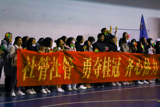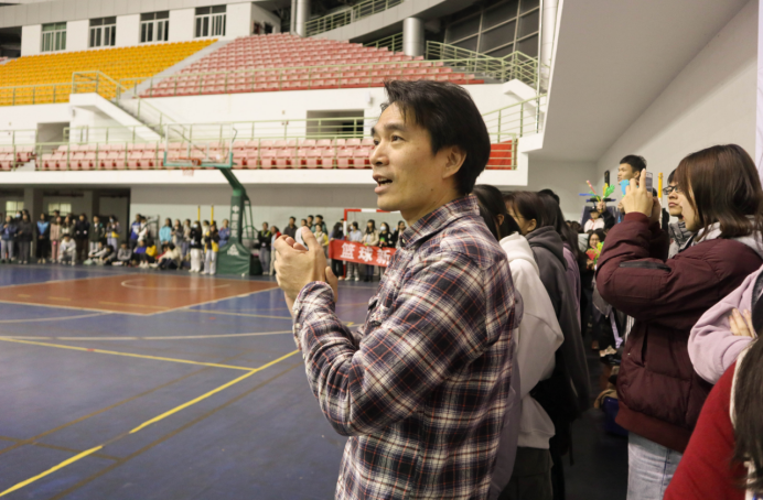 19日晚上,比赛还未开始,体育馆内的呐喊欢呼声早已此起彼伏。观众们翘首以望,辅导员钟明杰老师也亲临赛场为社管院女篮加油助威。