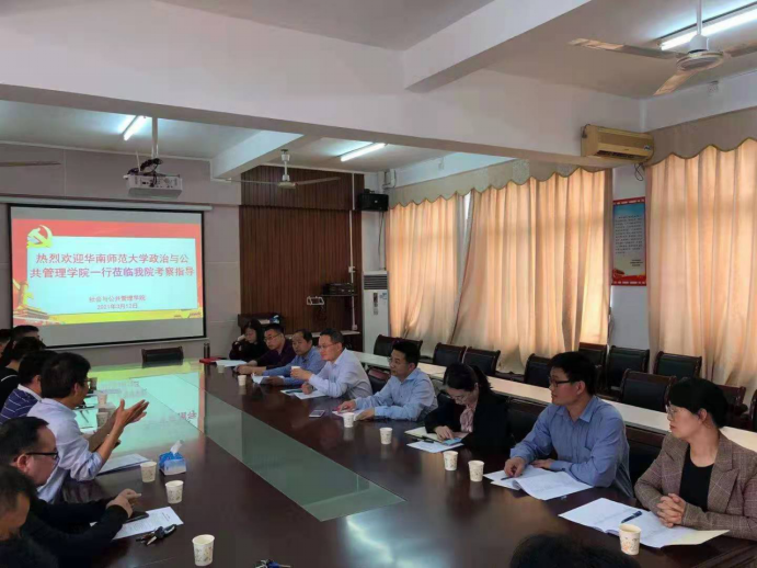 3月13日,华南师范大学政治与公共管理学院杨爱平副院长一行来我校与社会与公共管理学院开展交流活动。下午3:00,双方在弘雷楼313会议室举行座谈会,社管学院领导班子和部分教师参加座谈交流。