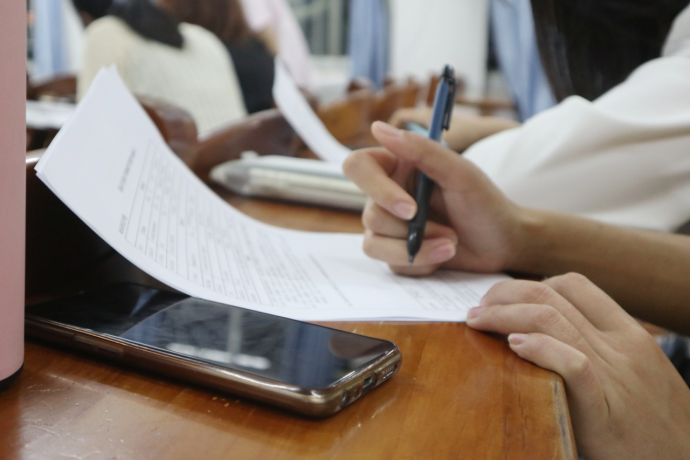 吴桂碧老师以身边的案例为切入点,强调诚信还款的重要性,并向同学们提出三点建议:一、请同学们争取在毕业前还款,如果毕业后还款一定要按时诚信还款;二、认真聆听本次会议的讲解内容,了解还款流程和注意事项,仔细填写《毕业生还款确认表》;三、如遇到问题及时提问或联系勤工中心工作人员。