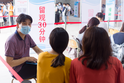 疫苗接种的整个流程高效快捷,各环节环环相扣、衔接有序。疫苗接种志愿者全程参与,为接种疫苗人员开展现场服务,协助医务人员核对信息、引导咨询、维持秩序。在所有工作人员通力合作下,疫苗接种现场秩序井然。