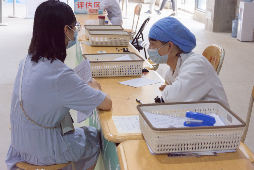上午8:30开始,社管院参加新冠疫苗接种的师生分批次来到接种现场,接种疫苗的师生排队进入体检区,经体温检测、健康问询、信息核实等程序后有序进入接种区,进行注射。接种疫苗前,医务人员为接种人员逐一核对疫苗信息,接种后按照要求在留观区观察30分钟,身体无异常后再离场。