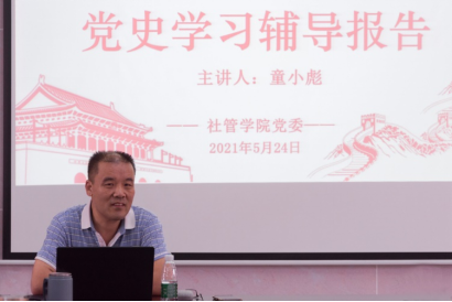 5月24日,社管学院邀请我校马克思主义学院教授、纪念文化研究所所长童小彪教授于弘雷楼大会议室开展党史学习辅导报告会议。我院党委冯亮如书记、张勇副院长(主持全面)、黄剑副院长、正处级辅导员钟明杰以及教职工代表参加了本次会议,会议由冯亮如书记主持。