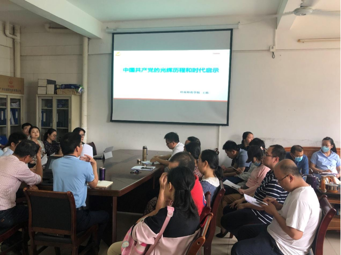 3月31日,为了让社管全体党员对党史学习有进一步的深入了解,特邀法政学院王栋教授莅临我院开展以《中国共产党的光辉历程和时代启示》为主题的宣讲报告。冯亮如书记、张勇副院长(主持全面)等全体教职工党员参加了本次党史学习。