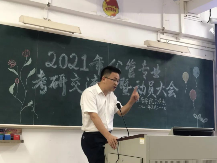 在行政管理专业的考研交流会上,张勇副院长对行政管理专业的考研进行了形势分析,他指出行政管理系学子考研方向广泛,要抛弃局限思维,培养专业自信。鼓励同学们多读书多行动,在对自己进行合理定位的同时正确选择报考院校和专业。