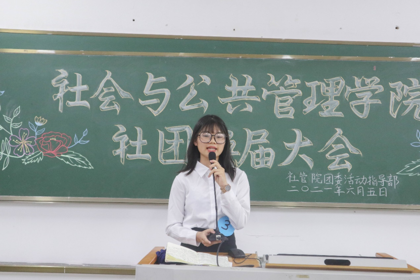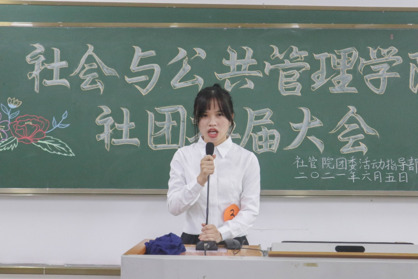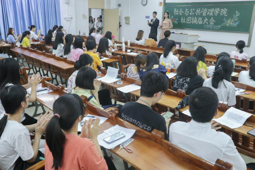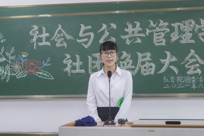 为展现学院各社团的风采、进一步推进社团工作,6月5日晚上,社会与公共管理学院活动指导部于弘雷楼505室举办了2020—2021年度学生社团换届大会。出席本次换届大会的嘉宾有社管院团委副职负责人陈虹妤、活动指导部部长叶绮莉,校社联督察部干部黄旭以及社管院各社团现任会长和理事会员们。