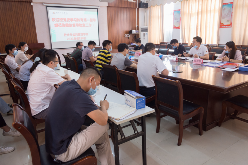 6月10日下午,学校党委副书记黄达海及学校团委书记林仲彦、学校学生工作部副部长邓倩文、学校党委宣传部副部长郭莉敏、学校纪委办公室科长杨燕妮一行莅临社管学院,于弘雷楼313大会议室召开党史学习教育督导工作会议。社管学院党政领导班子成员、各基层党支部支委参加了本次会议。