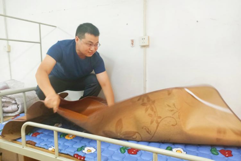 张勇副院长(主持)为家庭经济困难新生铺床