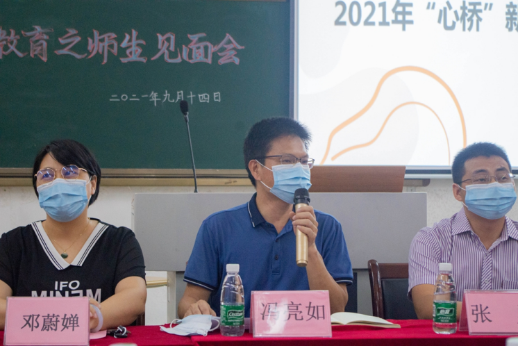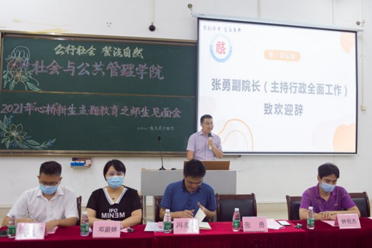 为进一步增进与学院2021级新生的沟通与交流,让新生更快适应大学的生活与学习。9月14日,社会与公共管理学院于弘雷楼611室召开“心桥”新生主题教育暨师生见面会,学院党委冯亮如书记、张勇副院长(主持)等领导班子成员、系主任、辅导员、2021级班主任及新生出席了本次会议,会议由冯亮如主持。