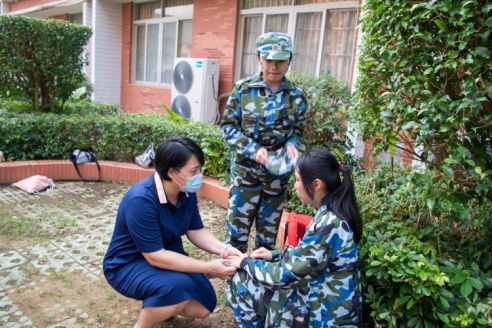 为及时了解社管学院2021级新生在校军训情况,9月19日早上,社管学院党委书记冯亮如、党委副书记邓蔚婵等院领导和老师来到社管院21级军训训练场,走访慰问军训新生,与新生亲切交谈、为新生送上关怀。