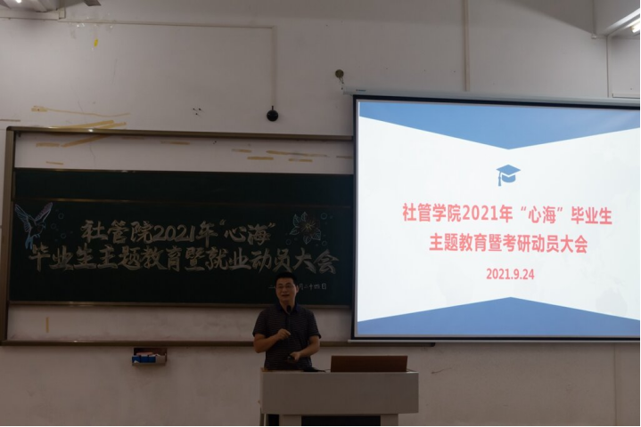 为了让毕业生更好掌握考研与就业政策,树立正确就业观念,适应就业新形势,提升就业工作质量。9月24日,社会与公共管理学院于弘雷楼611室召开2021年“心海”毕业生主题教育暨考研与就业动员大会,学院党委书记冯亮如、副院长(主持行政全面工作)张勇等领导班子成员,各系主任、班主任以及18级毕业生出席本次会议,会议由李从来主持。