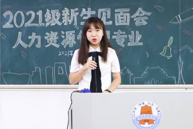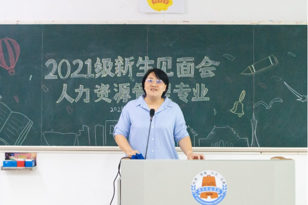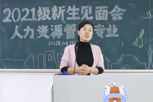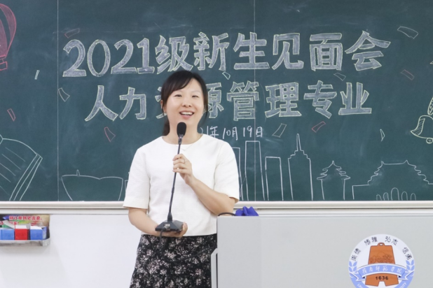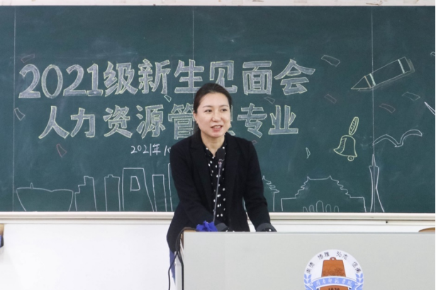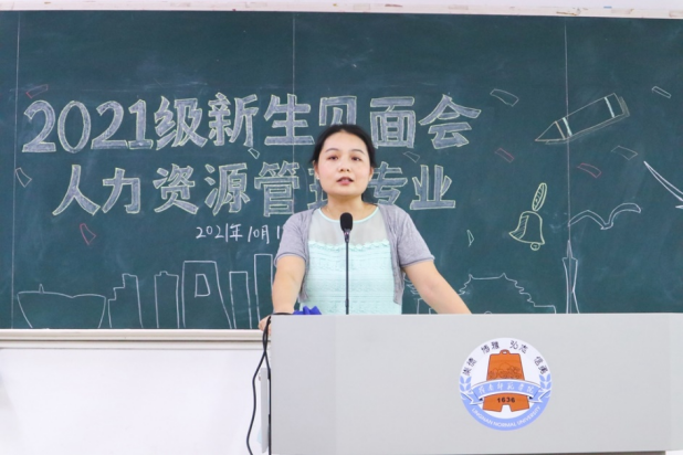 为深入推进党史学习教育,落实巡视整改措施,办实事育新人,10月19日晚,社管学院于弘雷楼305室举行2021级人力资源管理专业师生见面会,学院党委副书记邓蔚婵、人力资源管理系主任马诗咏和专业老师,以及21级人力资源管理专业全体新生参加了会议。本次会议线上线下相结合,新生家长通过线上方式在线参会。会议由系主任马诗咏主持。