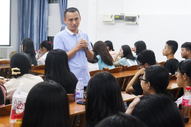 助班代表陈思颖则从学生角度出发,就专业学习、赛事项目和技能开发三方面,分享个人经验,帮助新生更快、更好地融入大学生活。