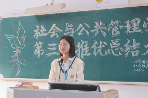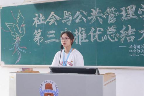 为激发广大团员青年的政治热情,加强党的队伍建设,增强共青团组织的吸引力和凝聚力,10月31日下午,社会与公共管理学院在弘雷楼405室举办第三次推优总结大会。社管院团委陈虹妤、付雅青、张玉玲,党建中心李斯华,各二级学院团委组织部代表以及本期推优对象参与本次会议。