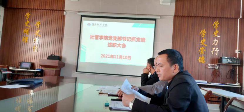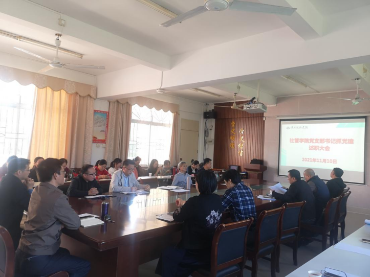 2021年11月10日,社管学院党委于教三313召开了2021年度基层党支部书记抓基层党建述职评议会,学院党政领导班子和全体教工参加此次会议,会议由学院党委书记冯亮如主持。