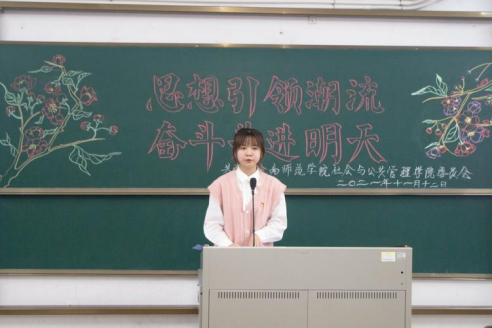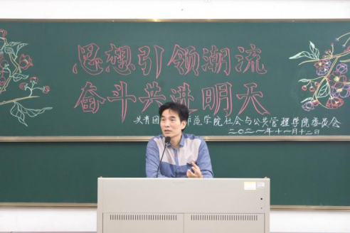 为进一步培养新干专业技能,帮助新干明确干部的责任和增强担当意识,11月12日晚,社会与公共管理学院分团校于弘雷楼703室开办了以“思想引领潮流,奋力共进明天”为主题的第二期新干培训活动。社管学院党委副书记邓蔚婵,辅导员钟明杰、何一明、李从来老师,优秀学生干部代表高晓岚以及六大机构学生干部出席了本次培训活动。