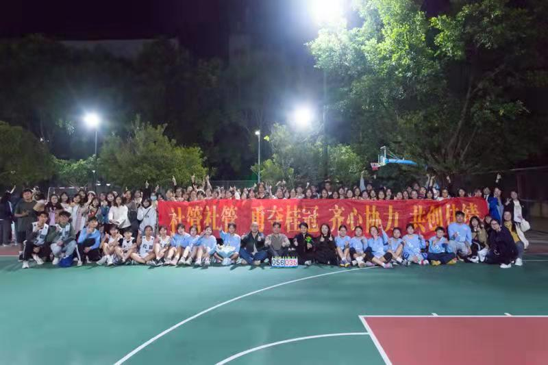 12月4日晚,岭南师范学院第二十七届“三好杯”篮球赛女篮决赛于雷阳六号场拉开序幕。社管学院党委副书记邓蔚婵、全体辅导员老师亲临现场观看比赛,为社管院女篮队员们加油助威!经过激烈的角逐,社管学院女篮对战法政学院女篮,最终以56:37的优异成绩击败对手,蝉联“三好杯”冠军。