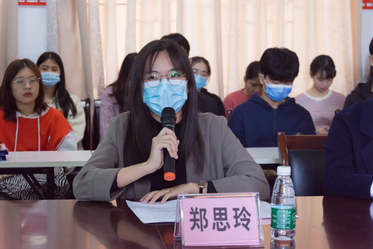 校友郑思玲以社工工作流程为主线,深入阐述妇联岗位社工的日常工作内容。她以服务站为例,指出服务站需要对接一个机构或小组,确认社会服务活动主题是否明确、对机构进行筛选的原则是否体现工作效率和配合程度、资料是否齐全以及信息是否完整等内容。妇联的工作离不开志愿者的配合以及相关行政部门的统筹协调街,坊是与妇联比较贴近的个案,从社工角度看,妇联岗位社工是资源的联接者,要思考妇联应如何为群众解决问题和社会工作专业知识该如何运用到妇联工作上。她建议同学们应勇于接受新事物新挑战,正确对待批评,耐心对待工作。