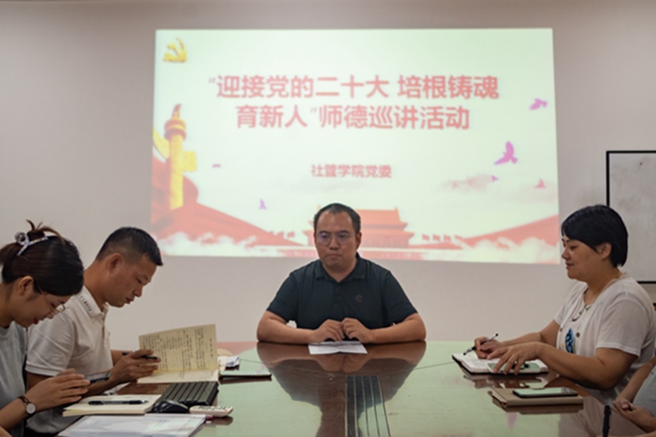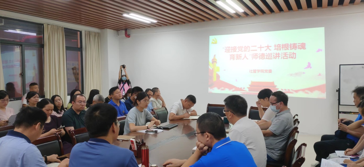 为进一步加强师德师风建设,贯彻落实《岭南师范学院2022年师德建设主题教育月活动实施方案》精神和要求,9月21日下午,社管学院于教五D303-2室举行“迎接党的二十大 培根铸魂育新人”师德巡讲会。会议由学院党委书记冯亮如主持,学院全体教职工参加会议。
