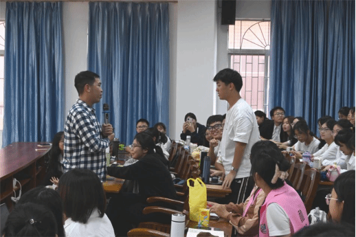 针对目标如何确立的问题,叶振豪校友分享了自身所使用的“5W归零思考法”。他结合自身参与志愿活动和填报专业的经历,建议同学们在任职期间需要确立“我想干出一件事或者我想在部门留下一些东西”的思想。他认为作为学生干部应该始终牢记“服务”二字,将“服务”放在前,把“身份”放在后,增强干部自身的责任担当。