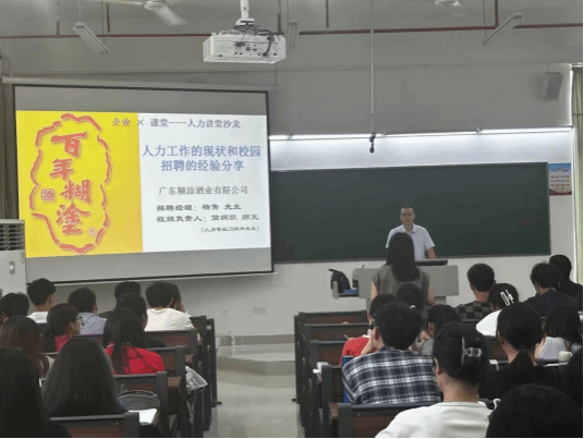 11月3日,广东糊涂酒业有限公司应邀到我院开展专场宣讲会。公司招聘经理杨隽、校招负责人简炳炽担任本次宣讲会活动的主讲人,我院学生代表参加了宣讲活动。活动由人力资源管理系教师王征主持。